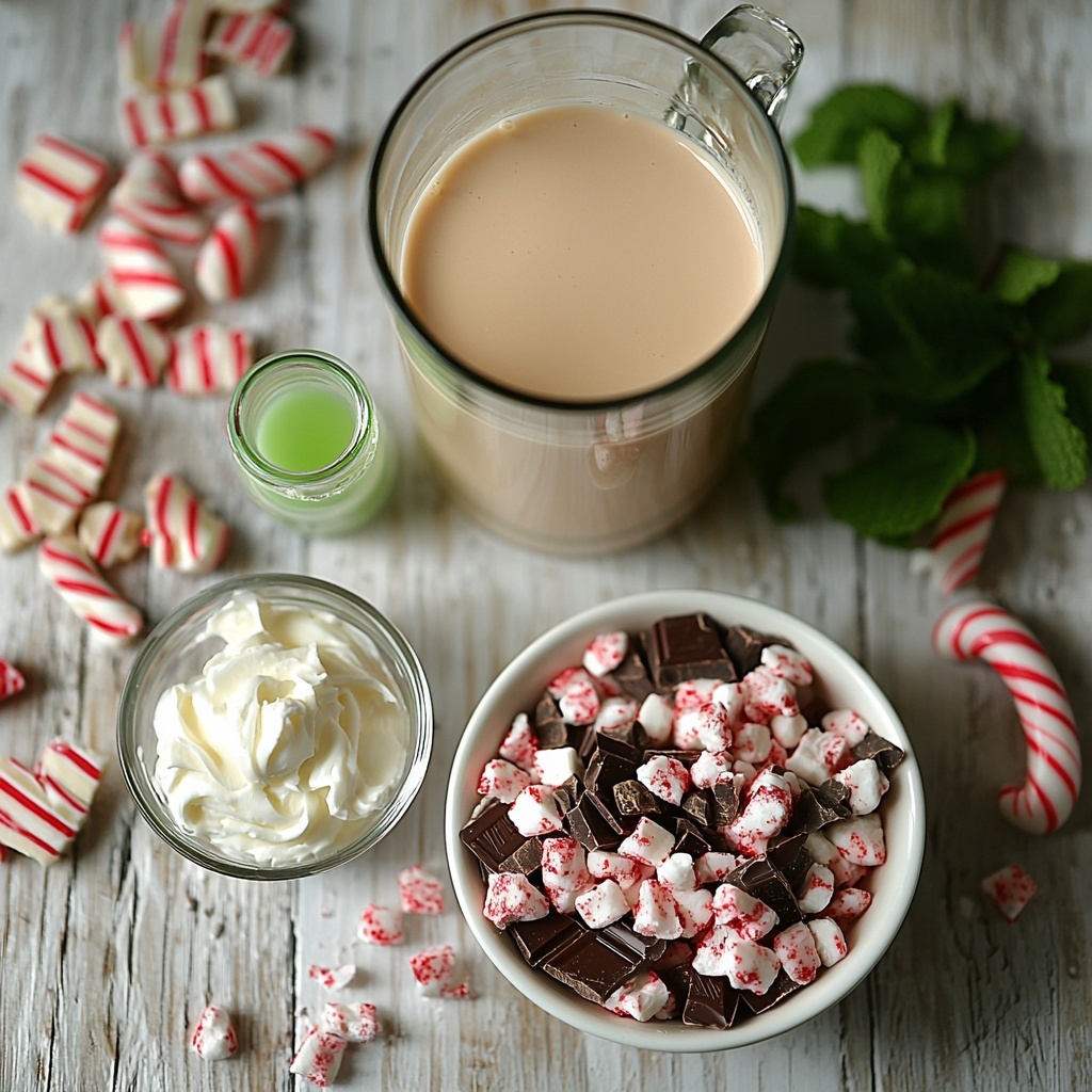 Gathering these few but fantastic ingredients is all it takes to create this delightful drink. Each component brings its own special touch — from silky texture to an invigorating minty aroma that truly defines the joy of this Peppermint Hot Chocolate Recipe.