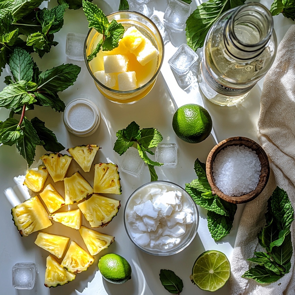 This Pineapple Coconut Mojito Recipe keeps things delightfully simple, yet every ingredient plays a vital role in building layers of flavor and texture. From the brightness of fresh lime juice to the creamy smoothness of coconut cream, these essentials come together beautifully.