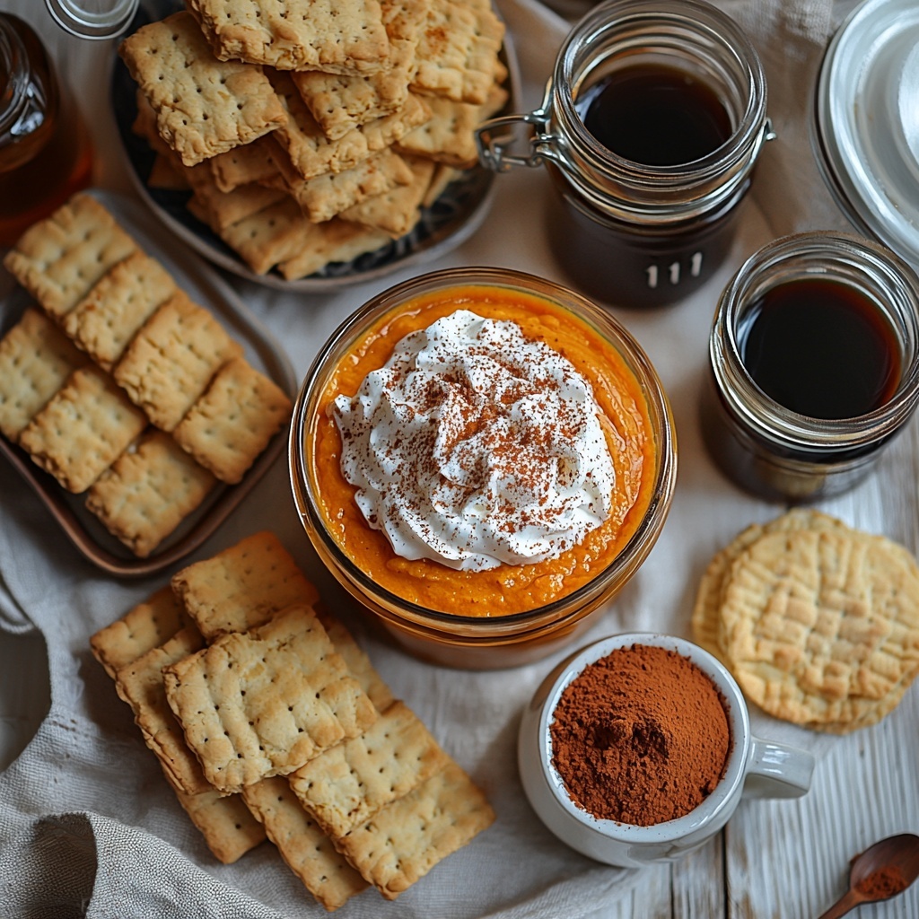 In a separate bowl, blend mascarpone cheese, pumpkin puree, powdered sugar, vanilla extract, and pumpkin pie spice until smooth and evenly combined. This mixture is where the dessert’s rich pumpkin flavor really shines, balanced by the gentle sweetness and spices.