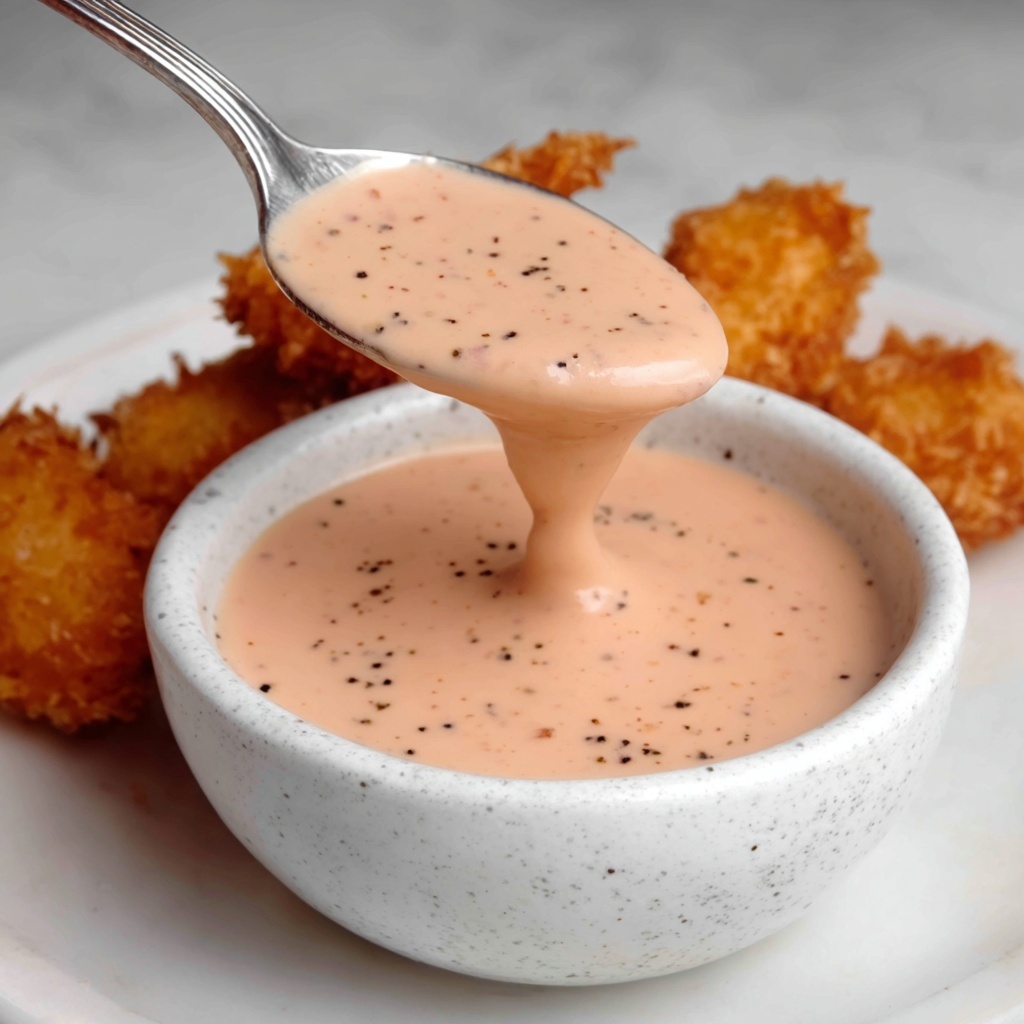 This sauce pairs wonderfully with crispy chicken fingers, but don’t stop there — it’s fantastic with fries, onion rings, even vegetable sticks. Consider pairing it with a simple coleslaw or a fresh garden salad to balance the richness on your plate.
