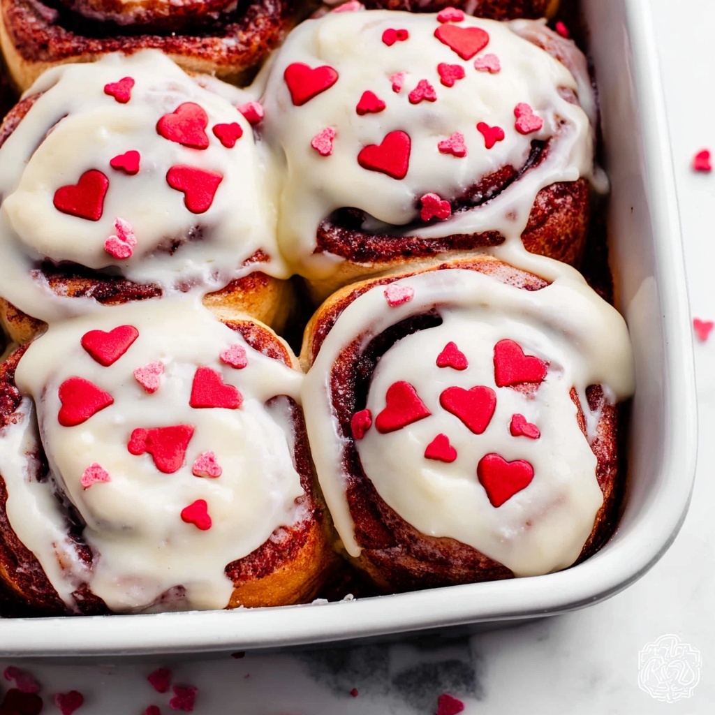 Deliciously soft and vibrant Red Velvet Cinnamon Rolls with a rich cinnamon-sugar filling and a smooth cream cheese icing. These homemade rolls boast a perfect balance of cocoa and red food dye for a festive twist on classic cinnamon rolls, ideal for a special breakfast or brunch treat.