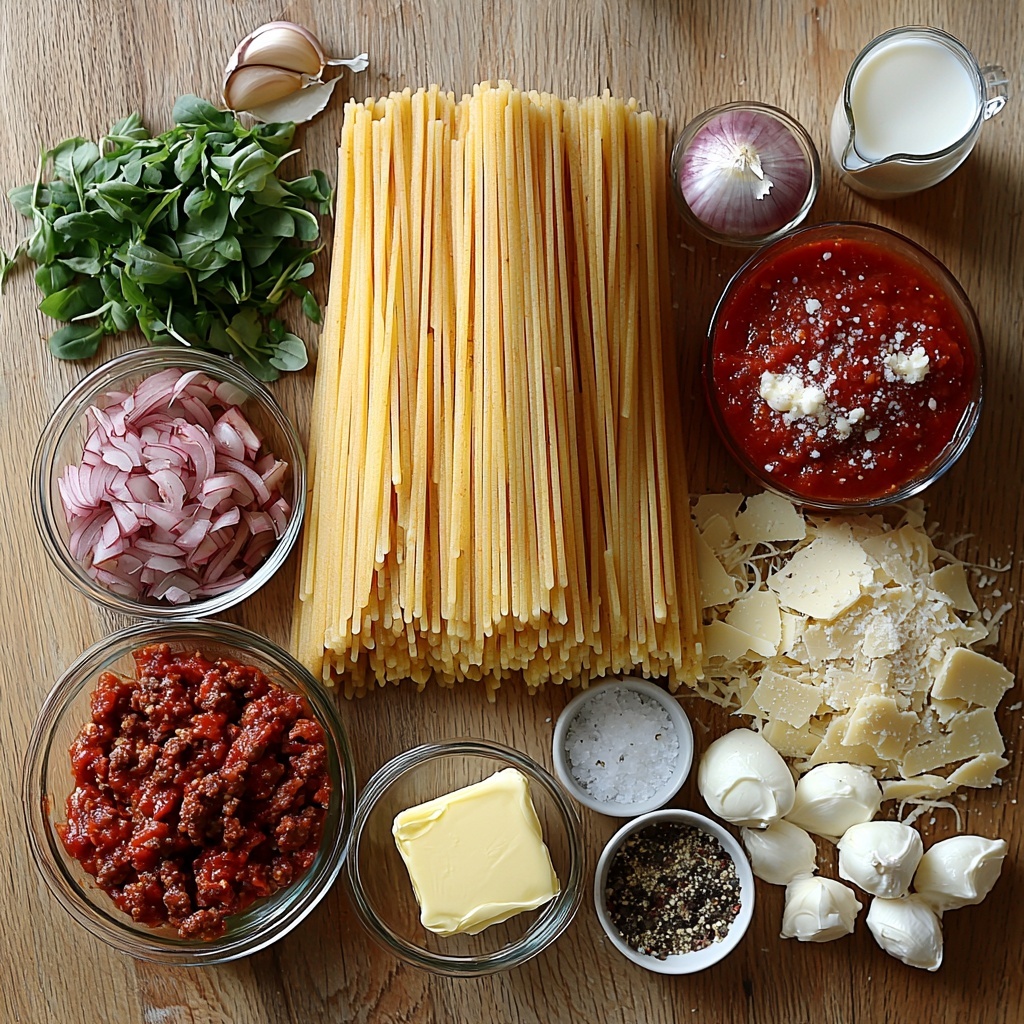 Keeping the ingredients straightforward yet thoughtfully selected is key for this Rich Million Dollar Spaghetti Alfredo Recipe. Each item plays an essential role, whether it’s the silky texture of the creamy sauce, the perfect bite of al dente pasta, or the deep, savory undertones of seasoned meat.