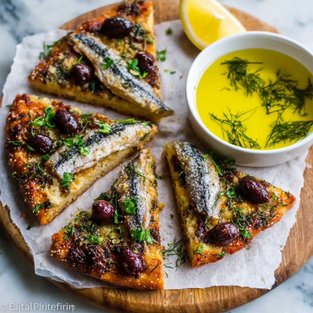 - Serve: Spread the sardine and olive tapenade evenly over the cooled flatbread, slice into wedges, and serve immediately for the best texture and flavor.
