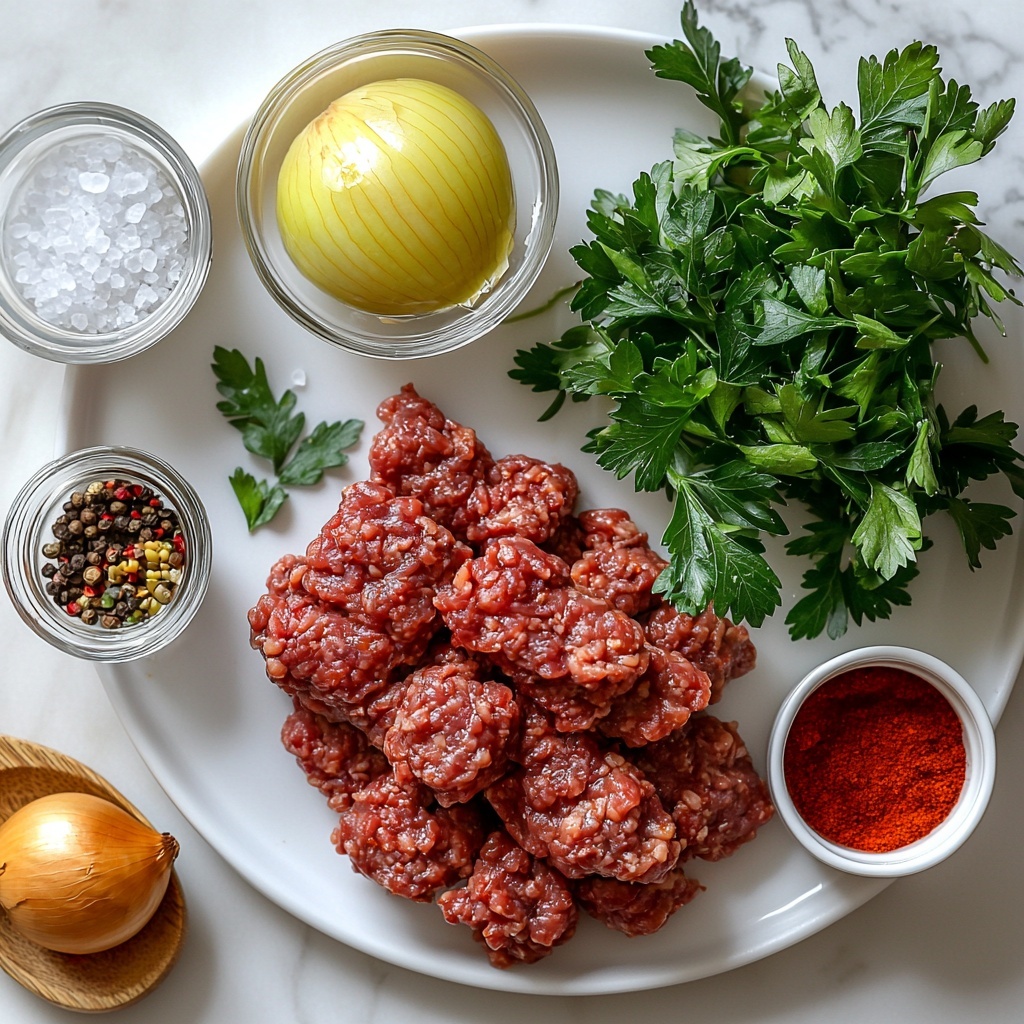 In a large mixing bowl, combine the lean ground beef with your chopped onion-parsley mixture. Next, add salt, black pepper, the aromatic seven spice blend, and the optional cayenne pepper if you want that extra zing. Using your hands, mix everything thoroughly until well combined—the tactile process helps develop the perfect texture and flavor balance.