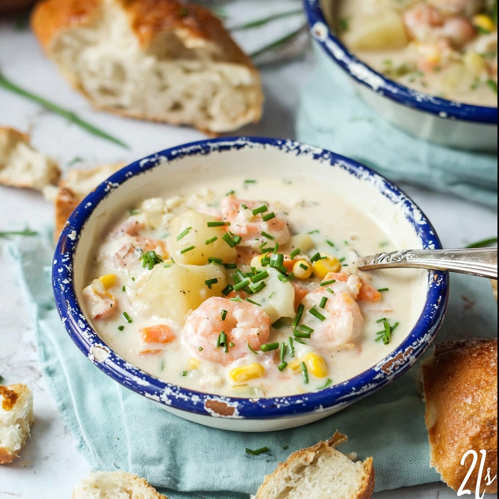 - Serve with garnish: Ladle chowder into bowls, sprinkle with chopped chives or parsley, and serve alongside warm crusty or garlic bread for dipping.
