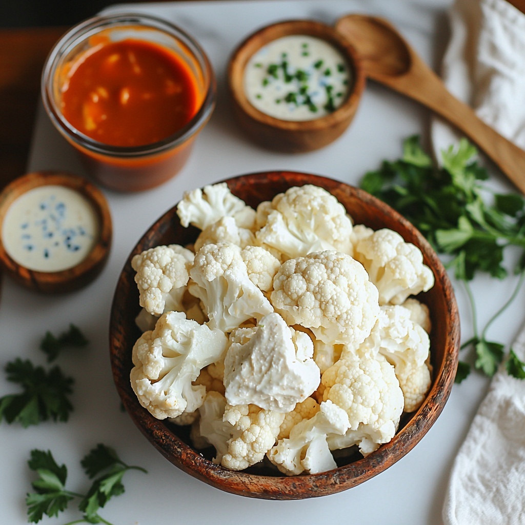 • Cauliflower (1 medium head): Cut into bite-sized florets, it forms the blank canvas for the buffalo flavor and offers a satisfying crunch.