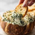 - Prepare Serving (Optional): If desired, hollow out a round loaf of bread to create a bread bowl and tear the inner bread into bite-sized pieces for dipping.