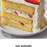 15. Decorate the Cake: Pipe the reserved frosting around the cake’s edges as desired, and decorate the top with sliced strawberries for a fresh, attractive finish.