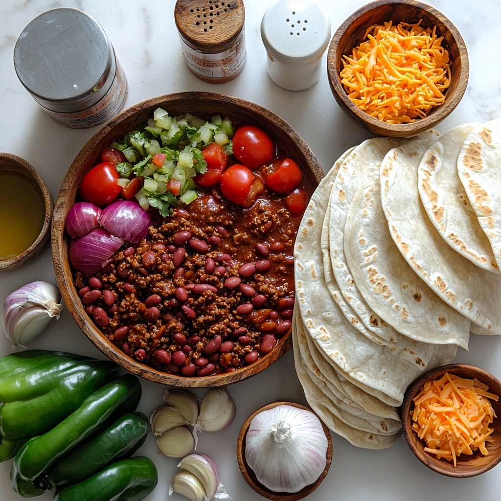 These ingredients are straightforward but each plays an essential role in building the rich texture, bold flavor, and classic color profile of the Taco Bell Chili Cheese Burrito Recipe. From the savory beef to the warming spices, every single element matters.