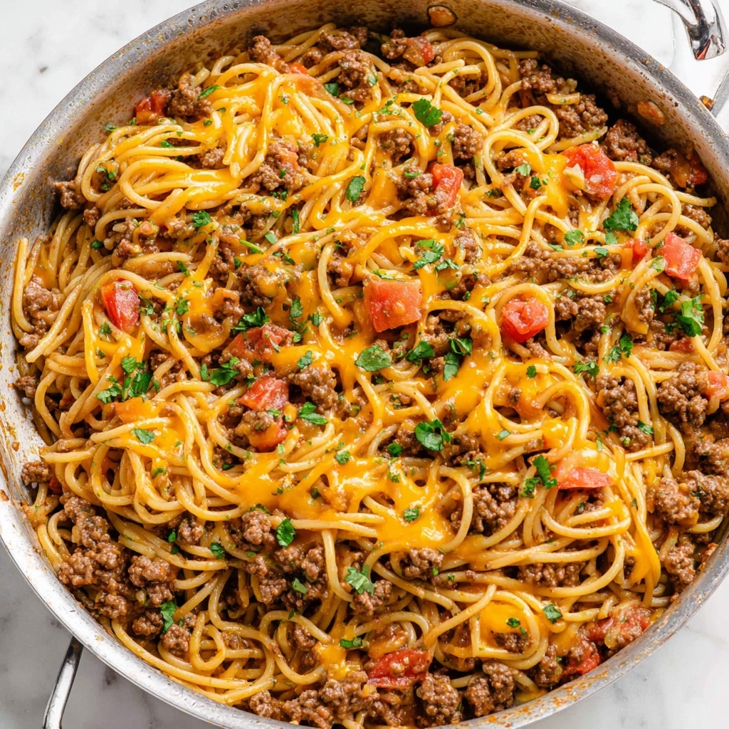 To impress at your next gathering, serve this dish family-style in a large rustic skillet right in the center of the table. Alternatively, portion individual servings topped with extra cheese and a sprig of cilantro on colorful plates for a festive look. For a twist, stuff this taco spaghetti into baked bell peppers or serve it in mini tortilla bowls for a playful presentation that kids and adults will love.