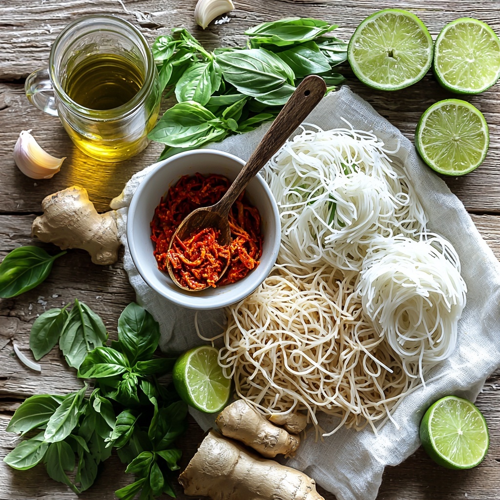 Pour in the chicken or vegetable broth, water, and fresh lime juice, then stir in the uncooked rice noodles. Bring everything to a gentle boil, allowing the noodles to soften right in the flavorful broth, soaking up all the spicy, tangy goodness.