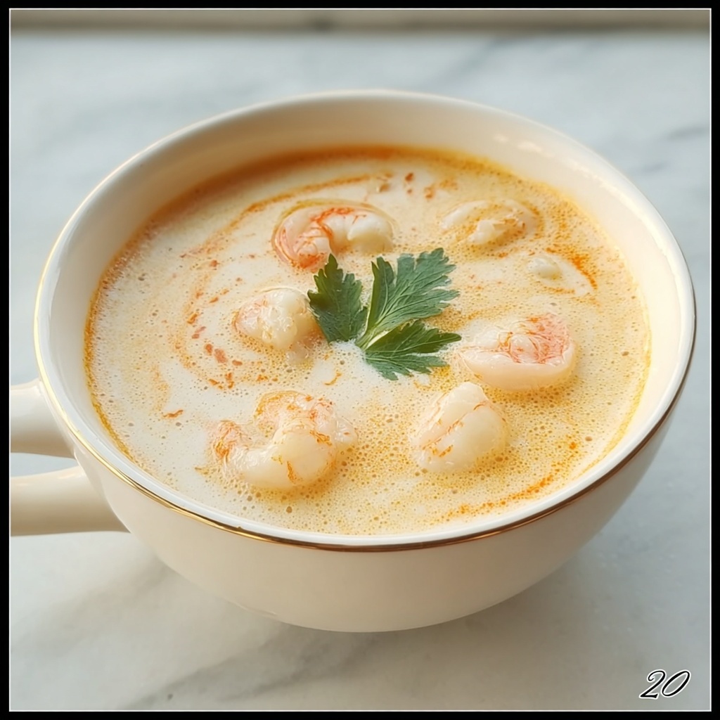 Reheat gently on the stove over medium-low heat, stirring occasionally until warmed through. Avoid boiling vigorously to keep the shrimp tender and the coconut milk smooth. Adding a splash of broth or coconut milk if the soup seems too thick will revive its perfect consistency.