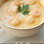 A rich and flavorful Thai coconut soup featuring tender shrimp, shiitake mushrooms, and aromatic spices simmered in a creamy coconut milk broth with hints of ginger, lemongrass, and red curry paste. This comforting soup balances savory, sweet, and tangy notes, making it a perfect dish for a warming meal.