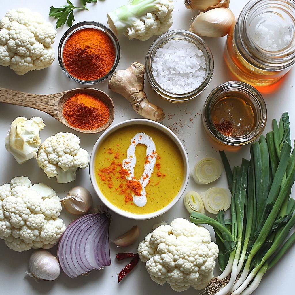 The magic behind this Turmeric Coconut Cauliflower Soup: A Creamy Delight! Recipe lies in its straightforward yet thoughtfully chosen ingredients. Each item brings its own character, enhancing the soup’s flavor, texture, and inviting color.