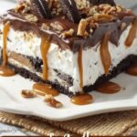 Turtle Lush is a decadent no-bake layered dessert featuring a rich Oreo crust, creamy chocolate pudding, whipped topping, and a luscious combination of caramel, chocolate syrup, and crunchy pecans. Perfect for gatherings and holidays, this indulgent treat requires minimal prep and chilling time to set, resulting in a crowd-pleasing dish that highlights the irresistible flavors of turtle candy.