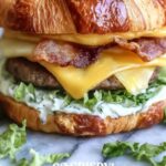 Fresh garnishes like crisp lettuce and ripe tomato slices bring brightness and texture to the richness of the croissant and beef. You can also add pickles for some tangy crunch or thinly sliced red onions for a little bite — all perfect companions for this decadent burger.