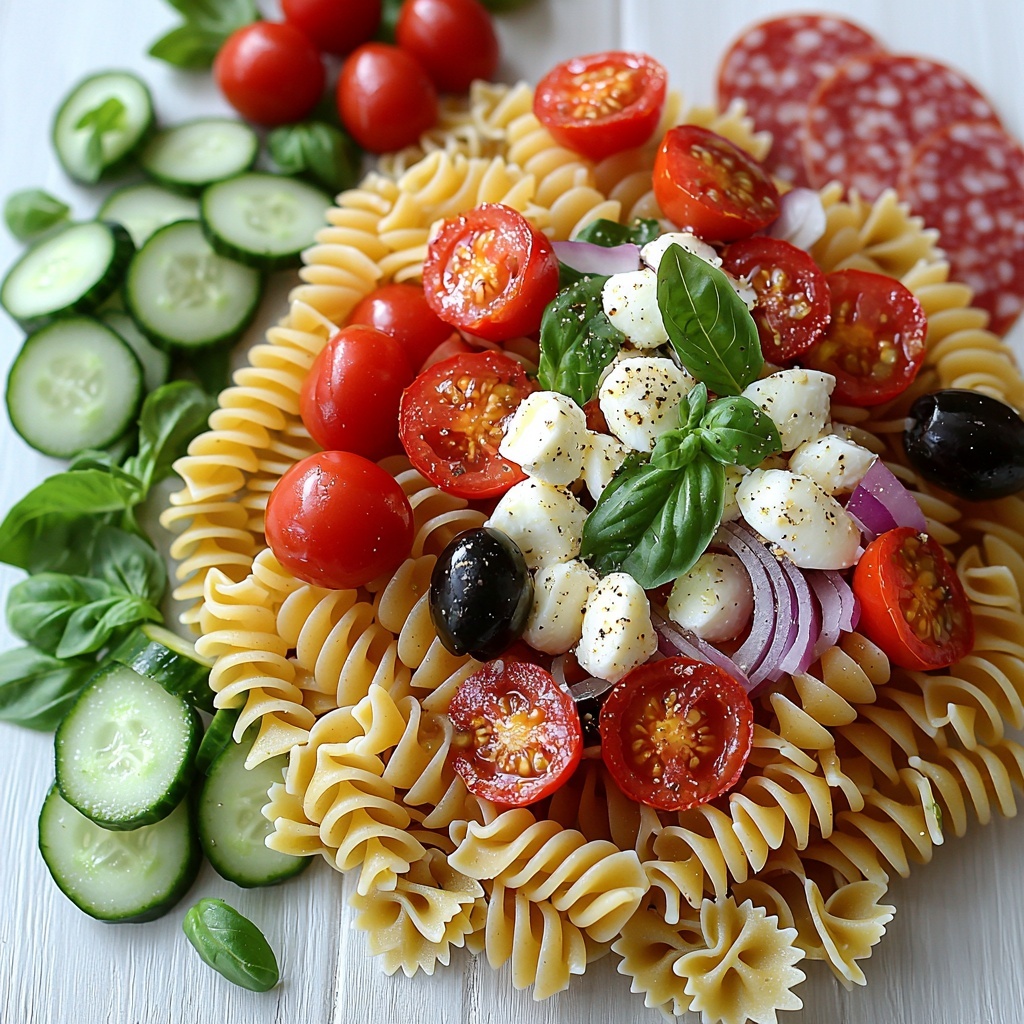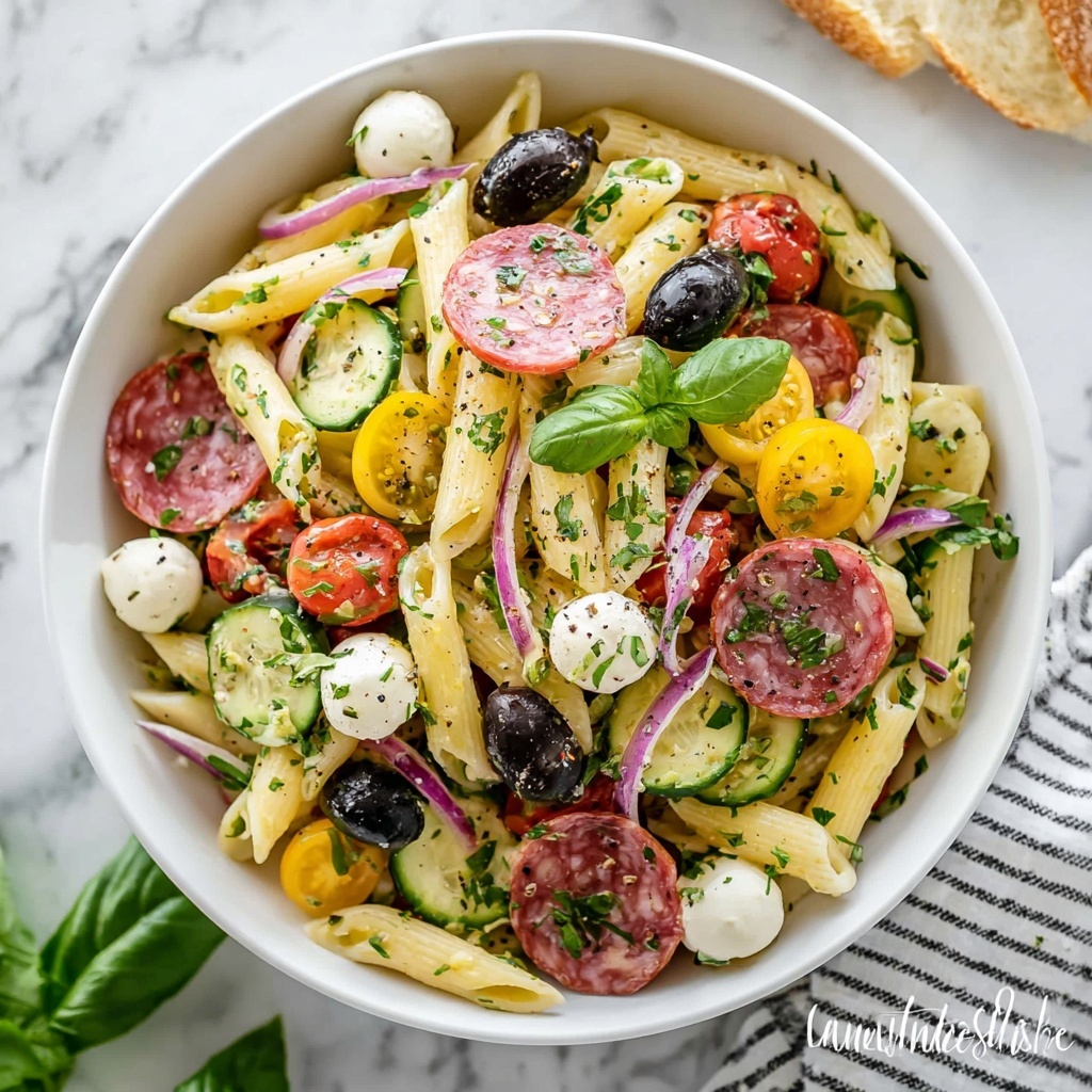 A vibrant and refreshing classic Italian pasta salad featuring al dente pasta, crisp vegetables, savory meats, tangy olives, and creamy mozzarella, all tossed in a zesty homemade Italian dressing. Perfect for BBQs, picnics, or effortless summer meal prep with customization options to add your favorite veggies.