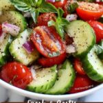 This Zesty Tomato Cucumber Salad is a refreshing, vibrant dish perfect for summer. Combining ripe tomatoes, crunchy cucumbers, and zesty herbs tossed in a tangy olive oil and red wine vinegar dressing, it offers a burst of flavor and hydration, making it an ideal light side or healthy snack.